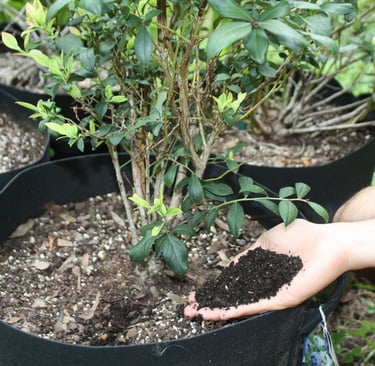 You're there! The most satisfying point of your compost journey is when you get to step 3... Finally, using it. Top dress all of your veggies & herbs, fruit trees, in-ground & outdoor potted plants, and hanging plants. They will thank you for doing this by producing abundantly and looking beautiful.